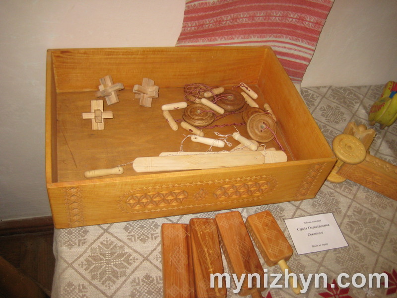 Сергій Олексійович Святний – ніжинський майстер з різьблення по дереву, який творить у жанрі народної іграшки, музичних інструментів та традиційного чернігівського посуду. З самого дитинства серйозно займається різьбленням. Вирізати з дерева фігурки тварин і людей навчився від батька, після чого самостійно вивчав особливості художньої обробки дерева і дерев`яної іграшки з книг та від інших майстрів.