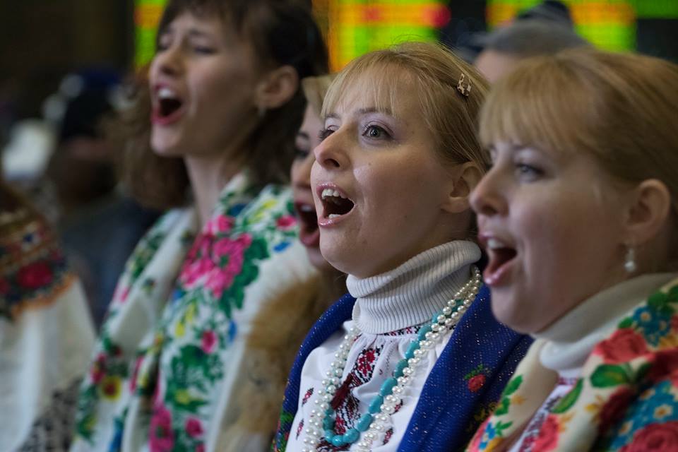 Вчора, 6 січня, на столичному вокзалі біля новорічної ялинки артисти Заслуженої хорової капели, клубу залізничників станції Ніжин і самодіяльного колективу «Цвіт калини» заспівали для киян та гостей міста колядки та щедрівки.