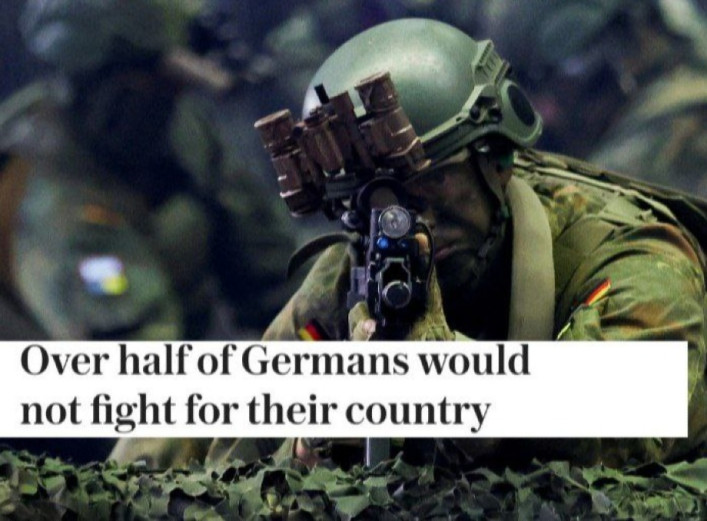 Більшість громадян Німеччини не готові особисто брати участь у збройному захисті країни в разі нападу Росії. Лише 16% респондентів заявили про безумовну готовність стати на захист Батьківщини. Про це повідомляє видання The Telegraph з посиланням